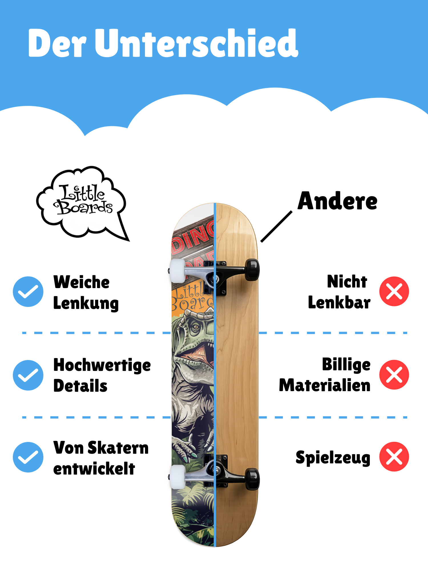 Deshalb sind die Kinder Skateboards von "Little Boards" Kleiner proportioniert und den Bedürfnissen der Kids angepasst.